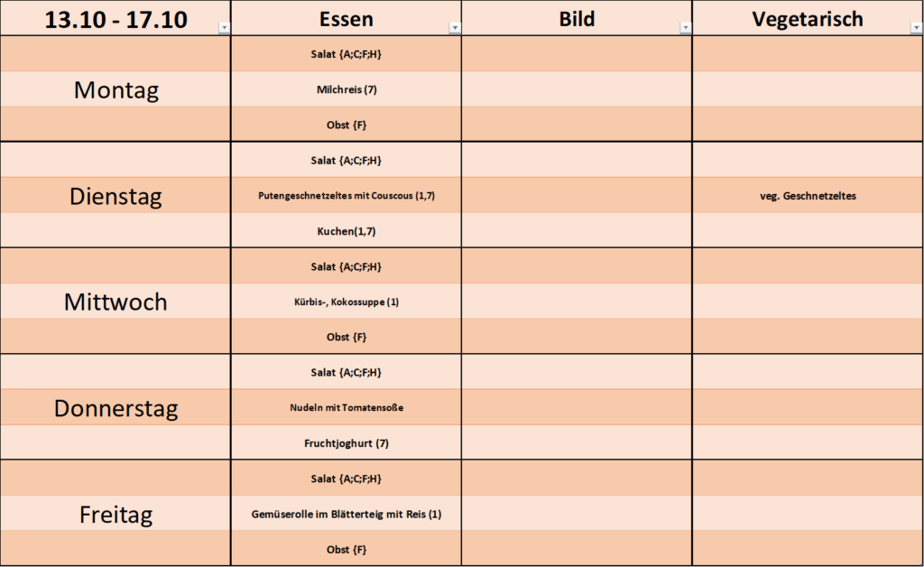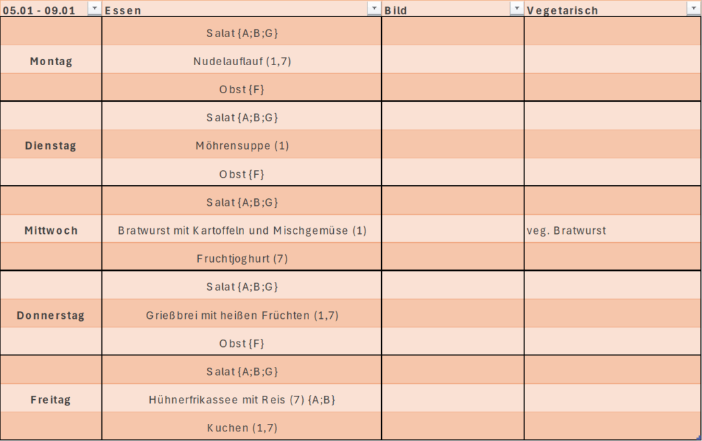 1 Gluten & Gluten Erzeugnisse / 2 Krebstiere & Krebstiererzeugmisse / 3 Eier & Eiererzeugnisse / 4 Fisch & Fischerzeugnisse /